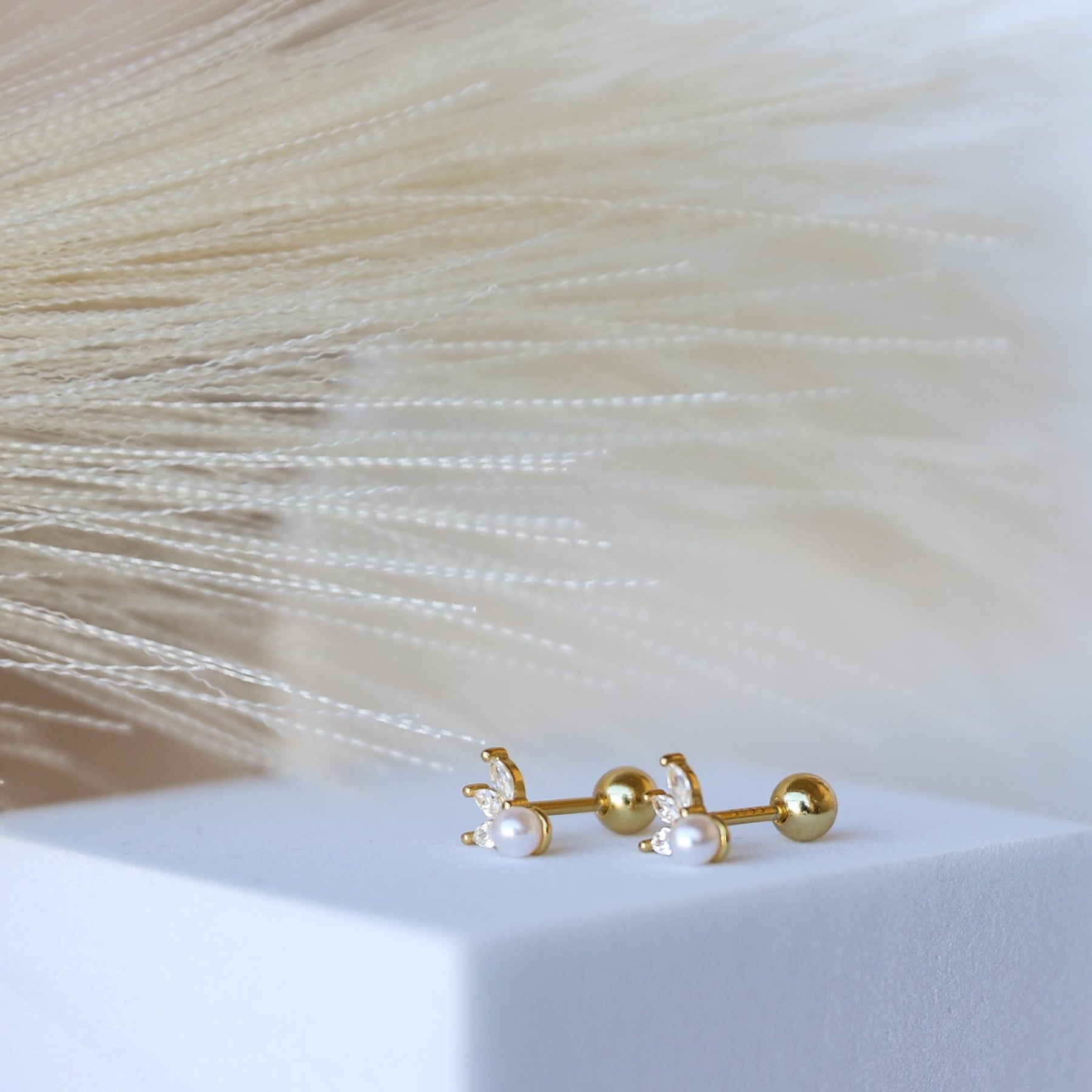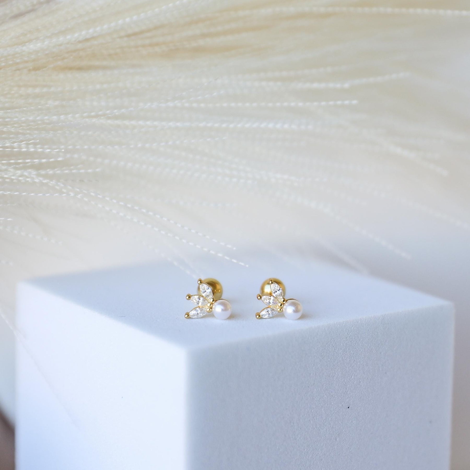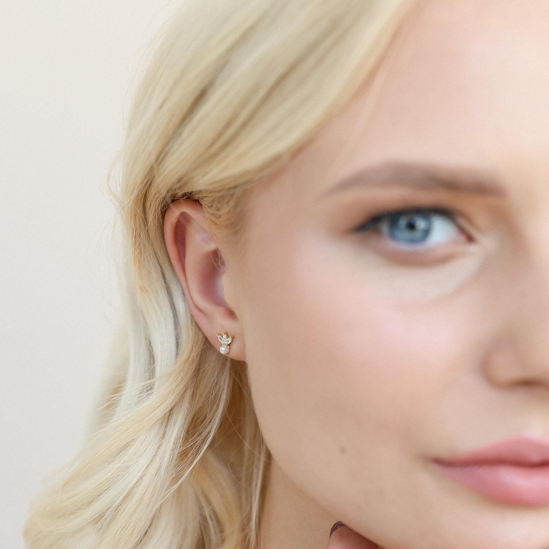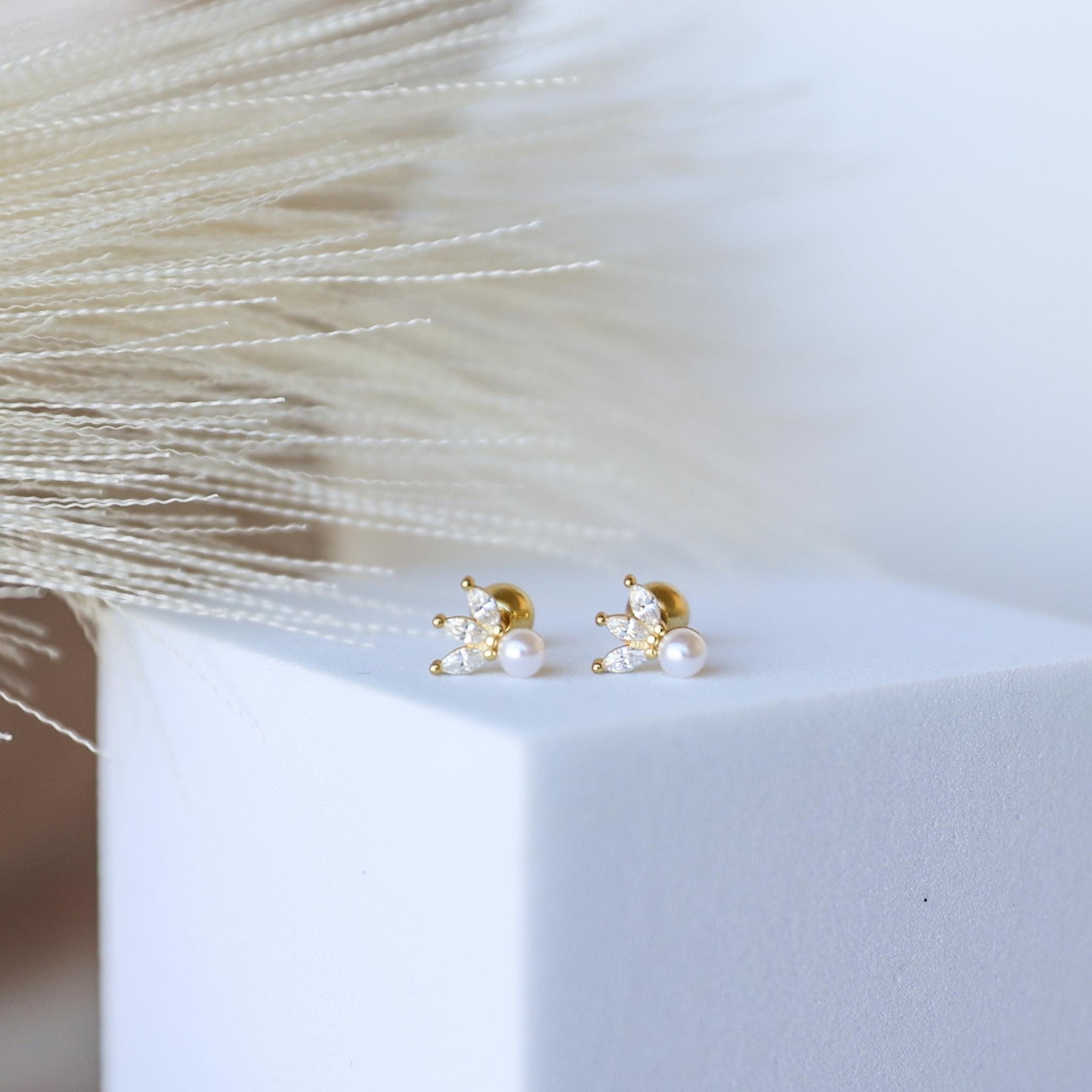 Add a touch of elegance to your everyday look with these Pearl and Crystal Stud Earrings, beautifully crafted from high-quality 925 sterling silver. Each earring features a lustrous freshwater pearl paired with sparkling crystal stones arranged in a delicate floral design, creating a timeless and feminine accessory.