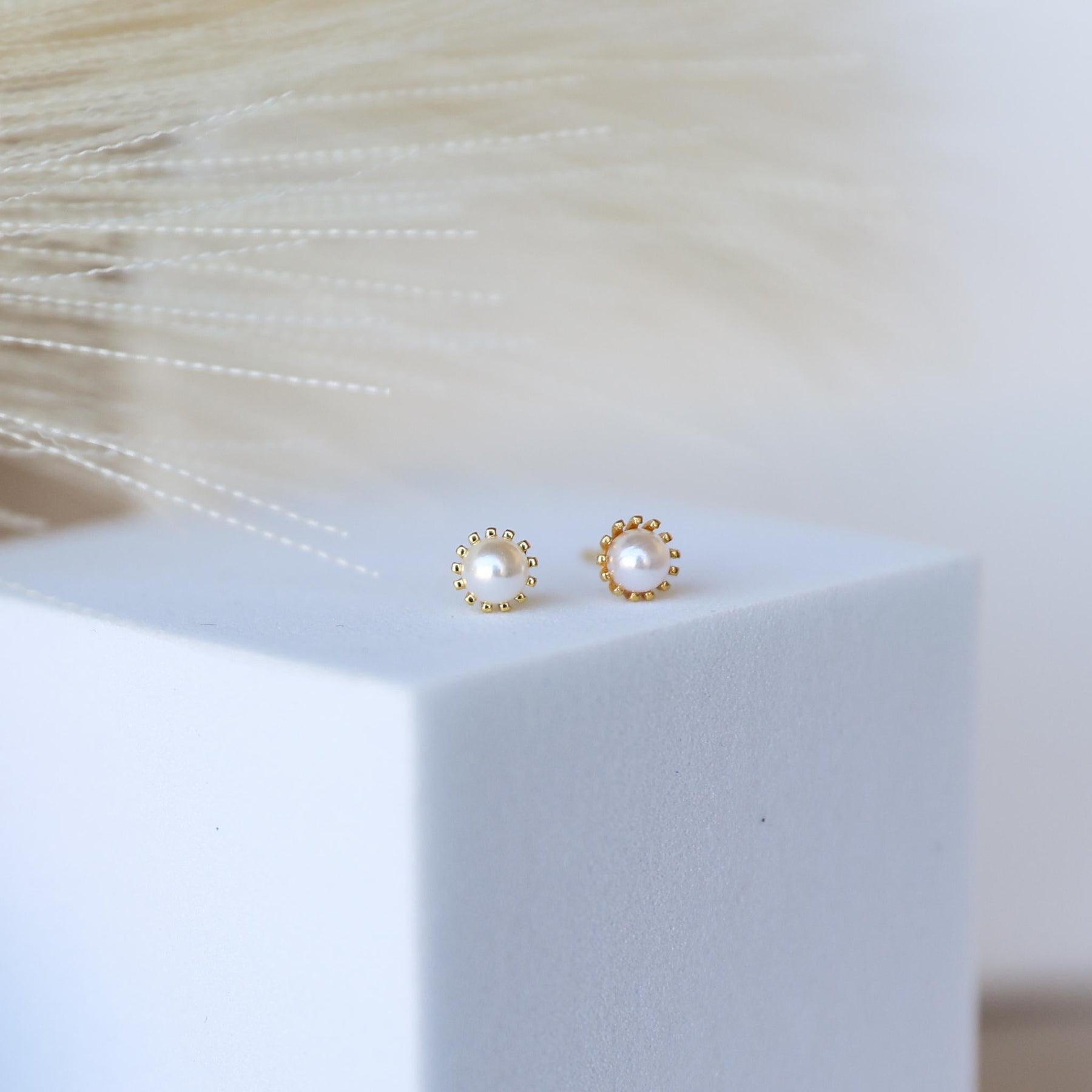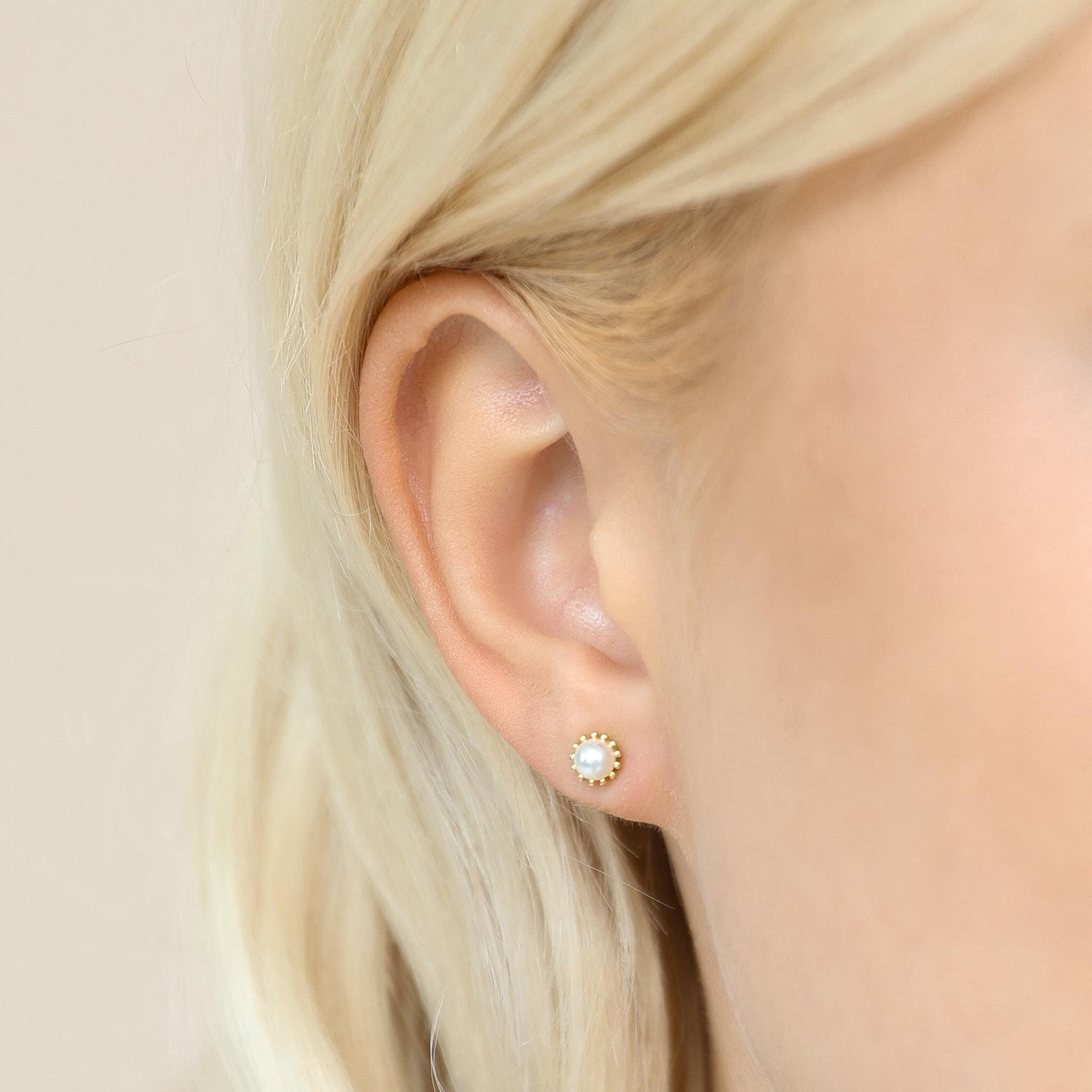 Elevate your everyday look with these Elegant Gold Pearl Stud Earrings, crafted from high-quality 925 sterling silver and finished with a durable gold plating. Each earring features a delicate freshwater pearl set in a beaded gold frame, creating a timeless and feminine design suitable for any occasion.