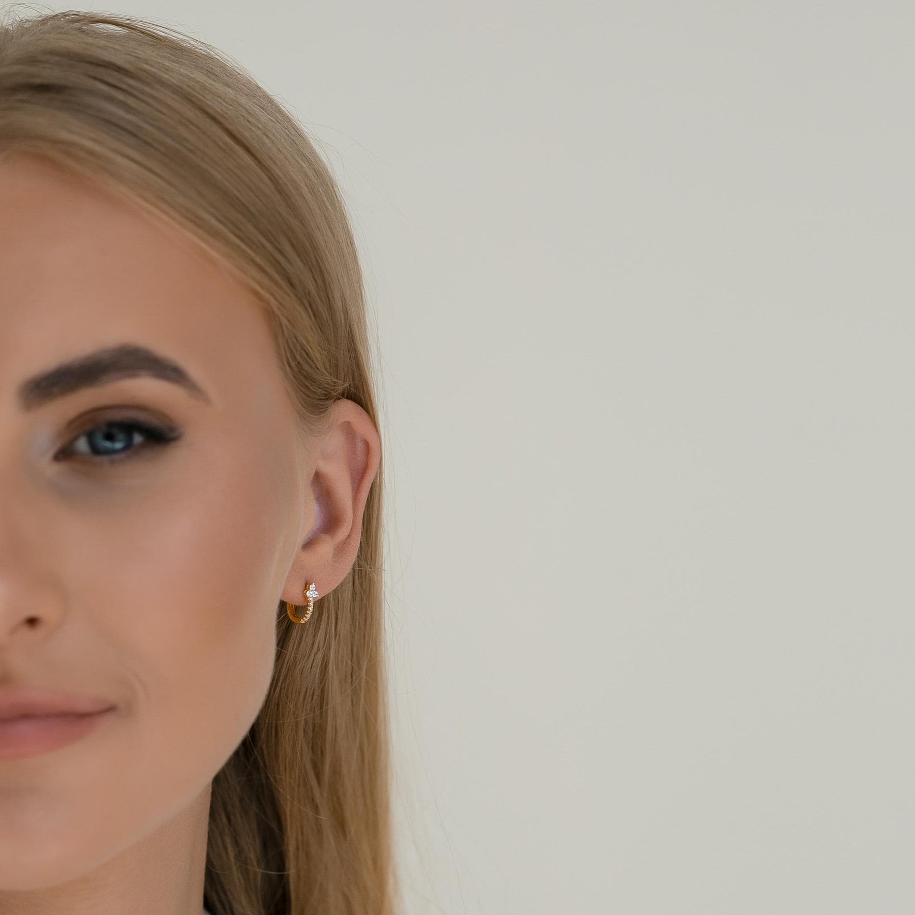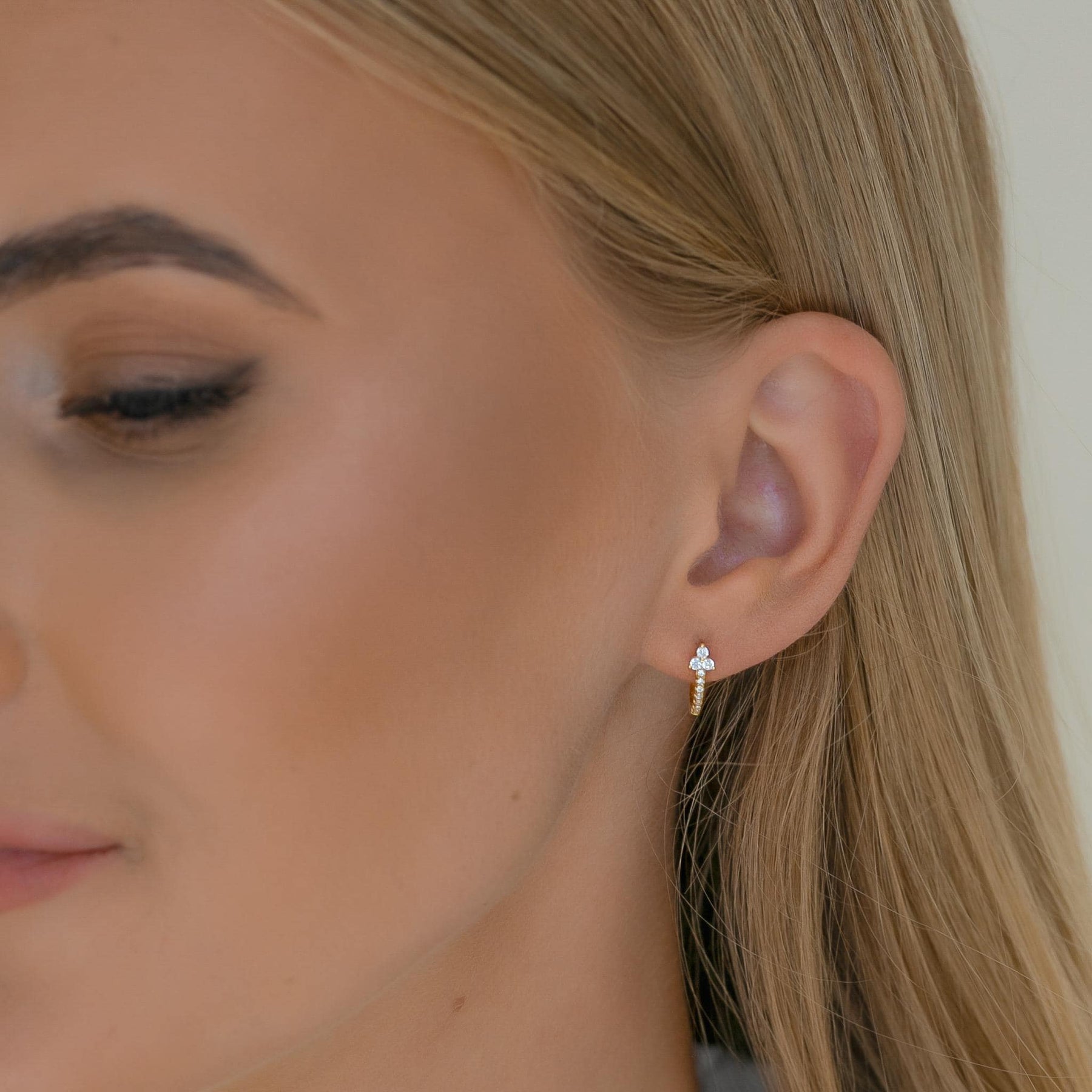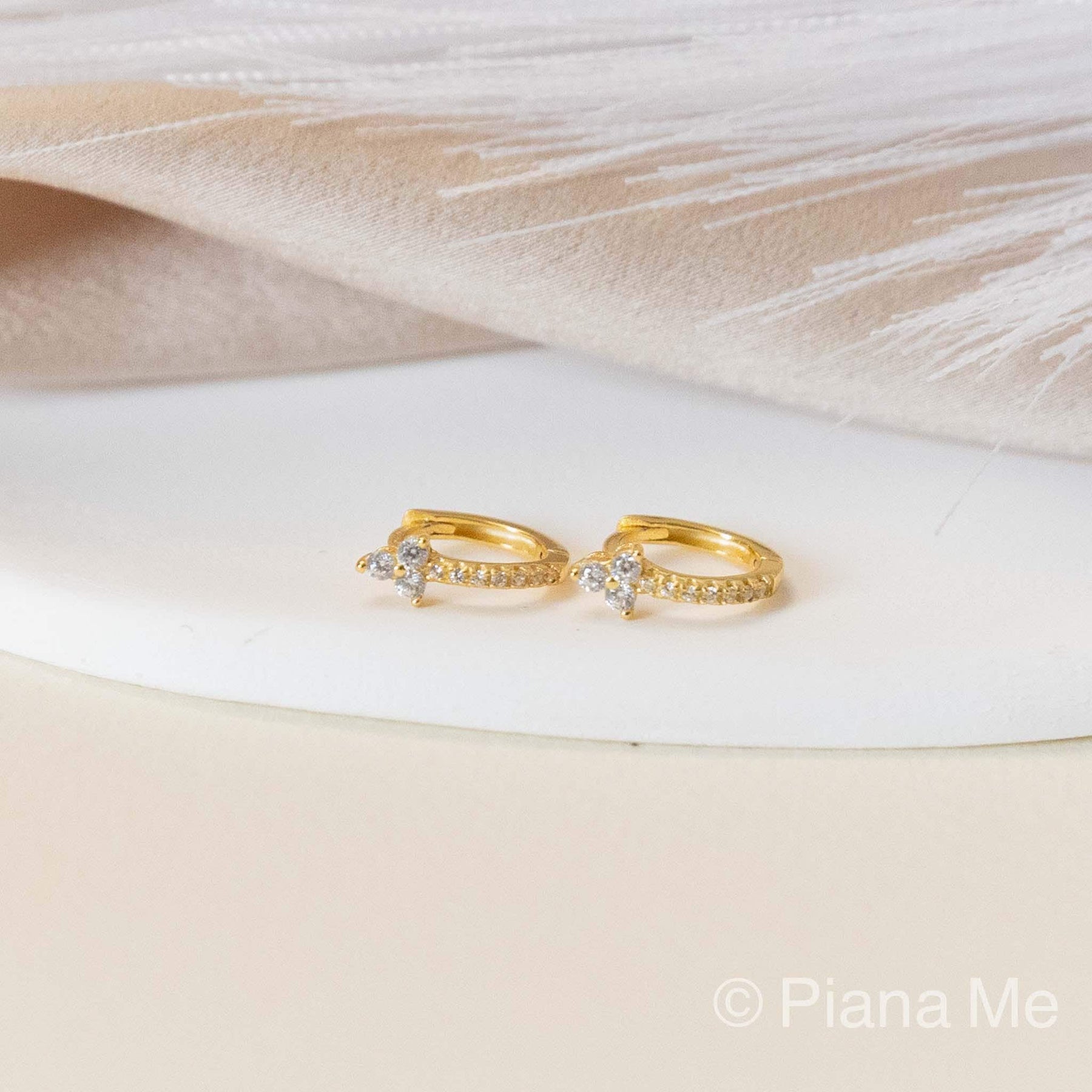 Elevate your everyday style with these elegant Floral Diamond Huggie Hoop Earrings crafted from premium 925 sterling silver. Each hoop features a delicate flower-shaped cluster of sparkling cubic zirconia stones paired with a sleek gold-plated finish, creating a timeless and feminine look perfect for any occasion.