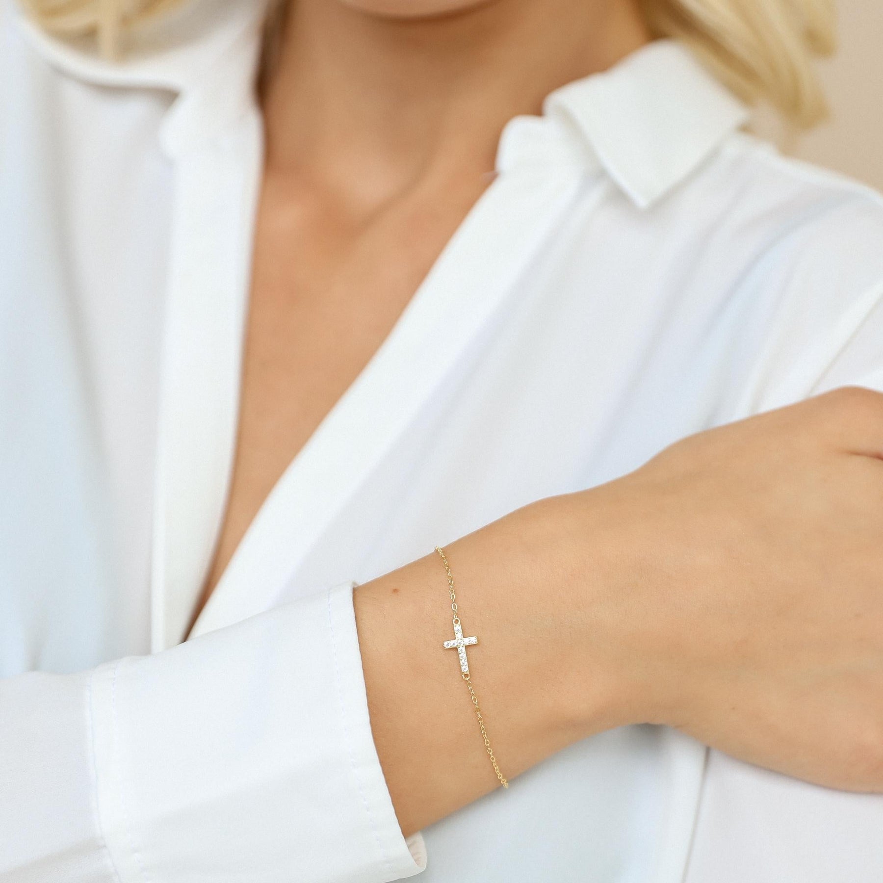 Gold Cross Bracelet by GracePiana