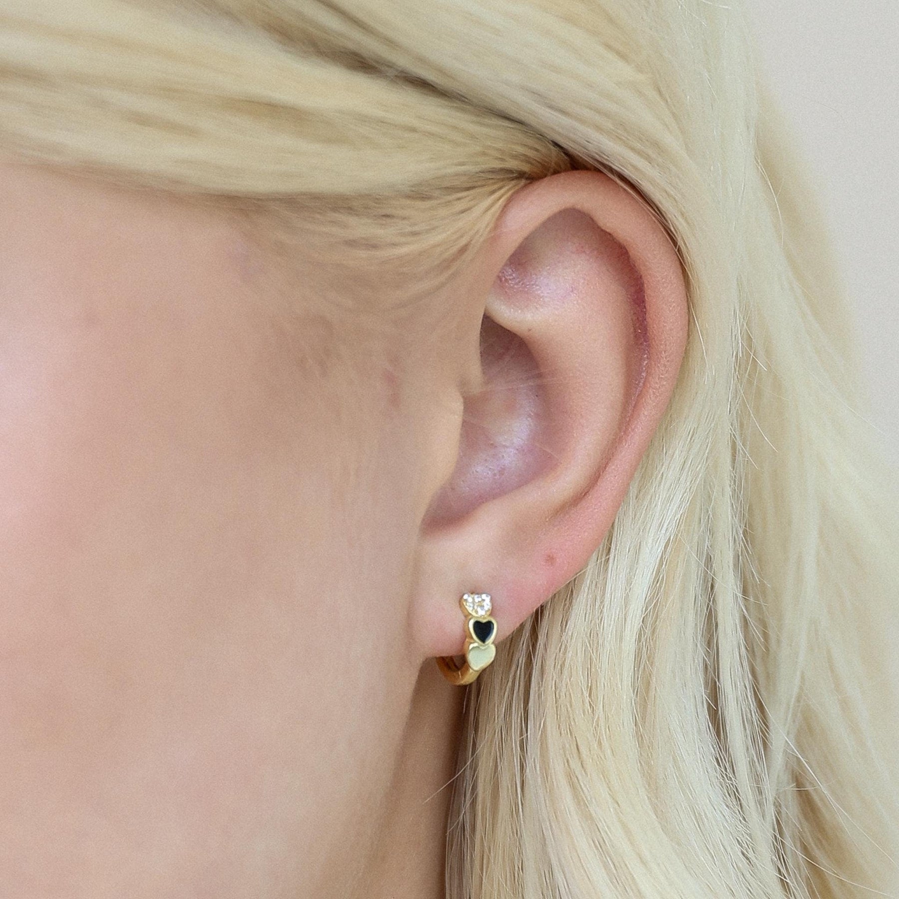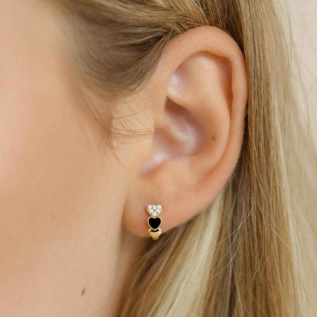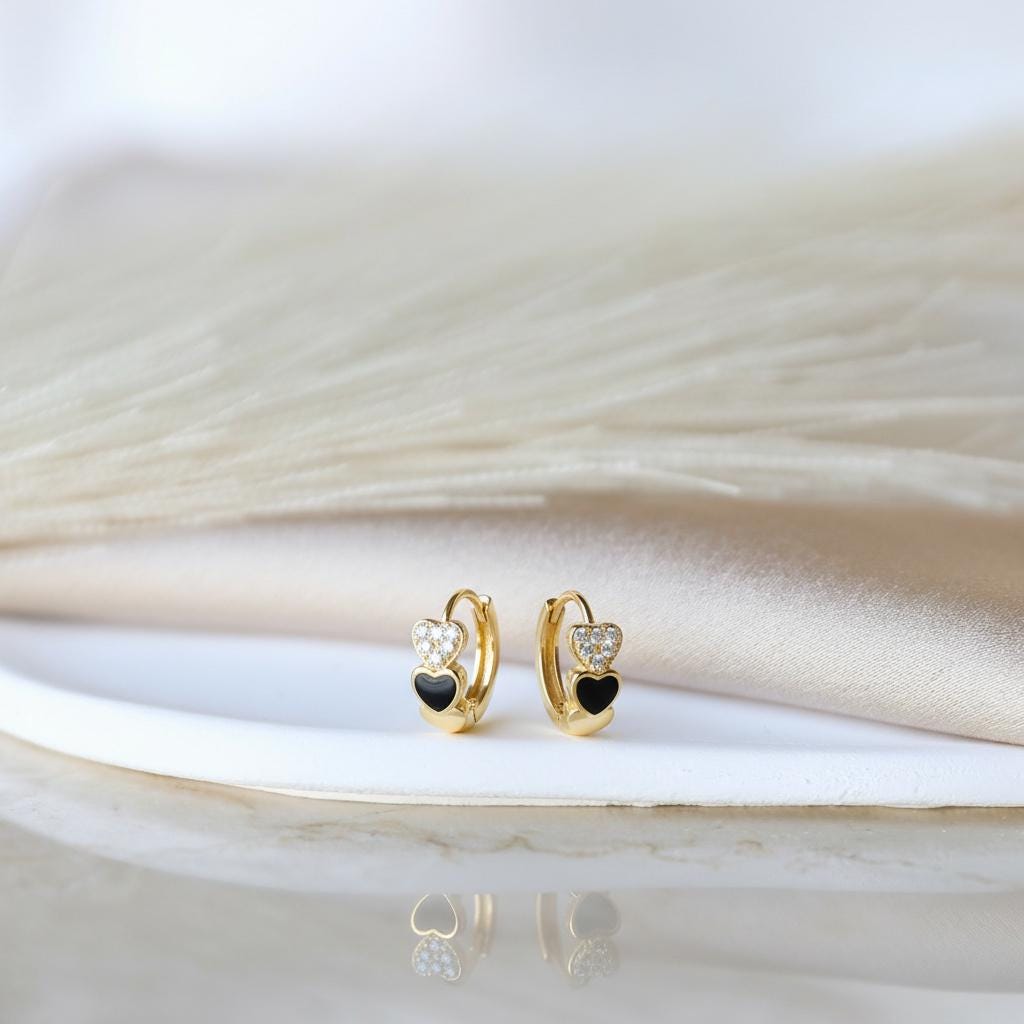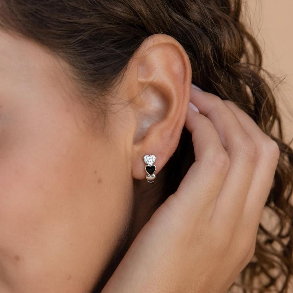 Add a romantic touch to your everyday look with these stunning Heart Hoop Earrings, crafted from premium 925 sterling silver. Each hoop features a charming double-heart design—one adorned with sparkling cubic zirconia and the other with glossy black enamel—creating a perfect balance of elegance and modern style.
