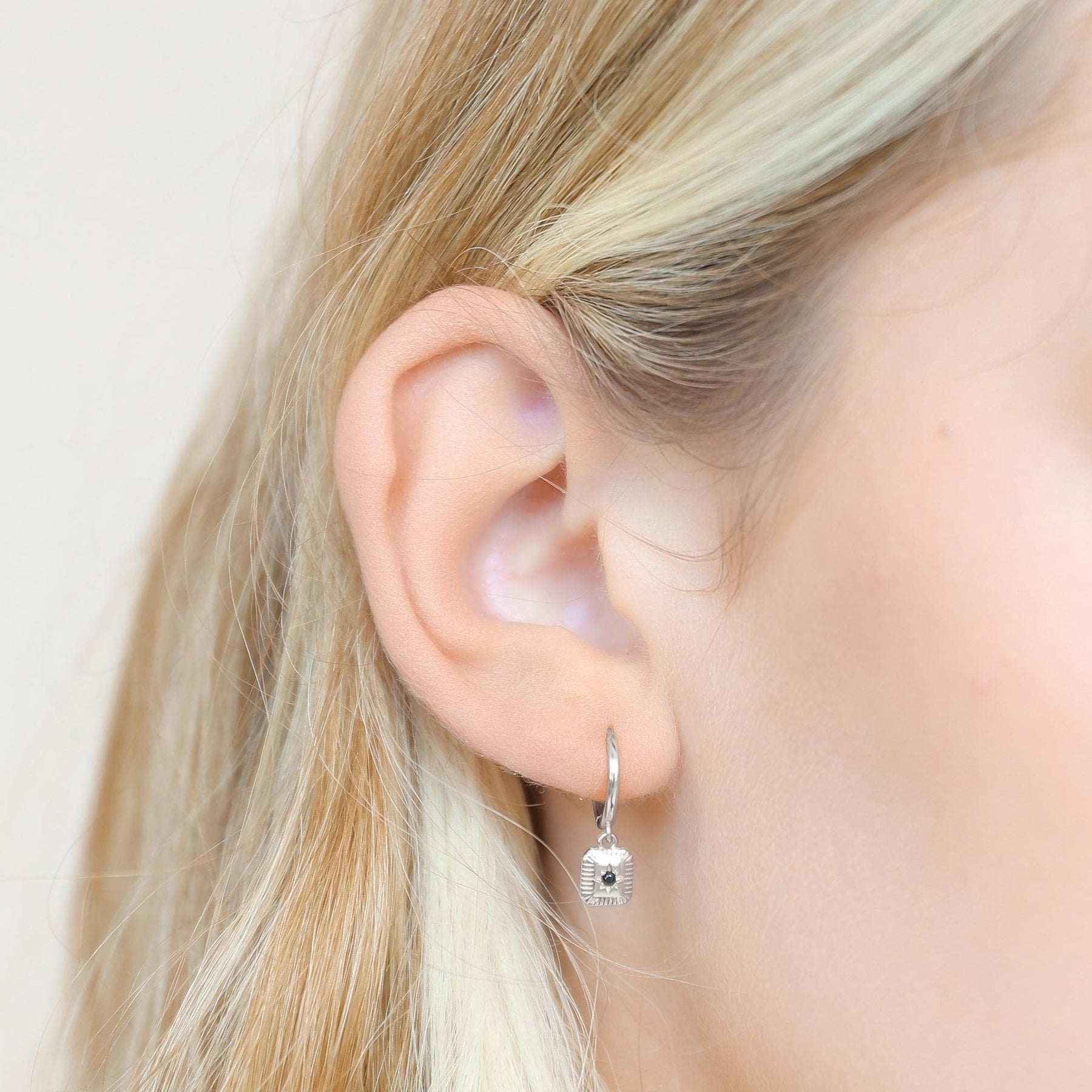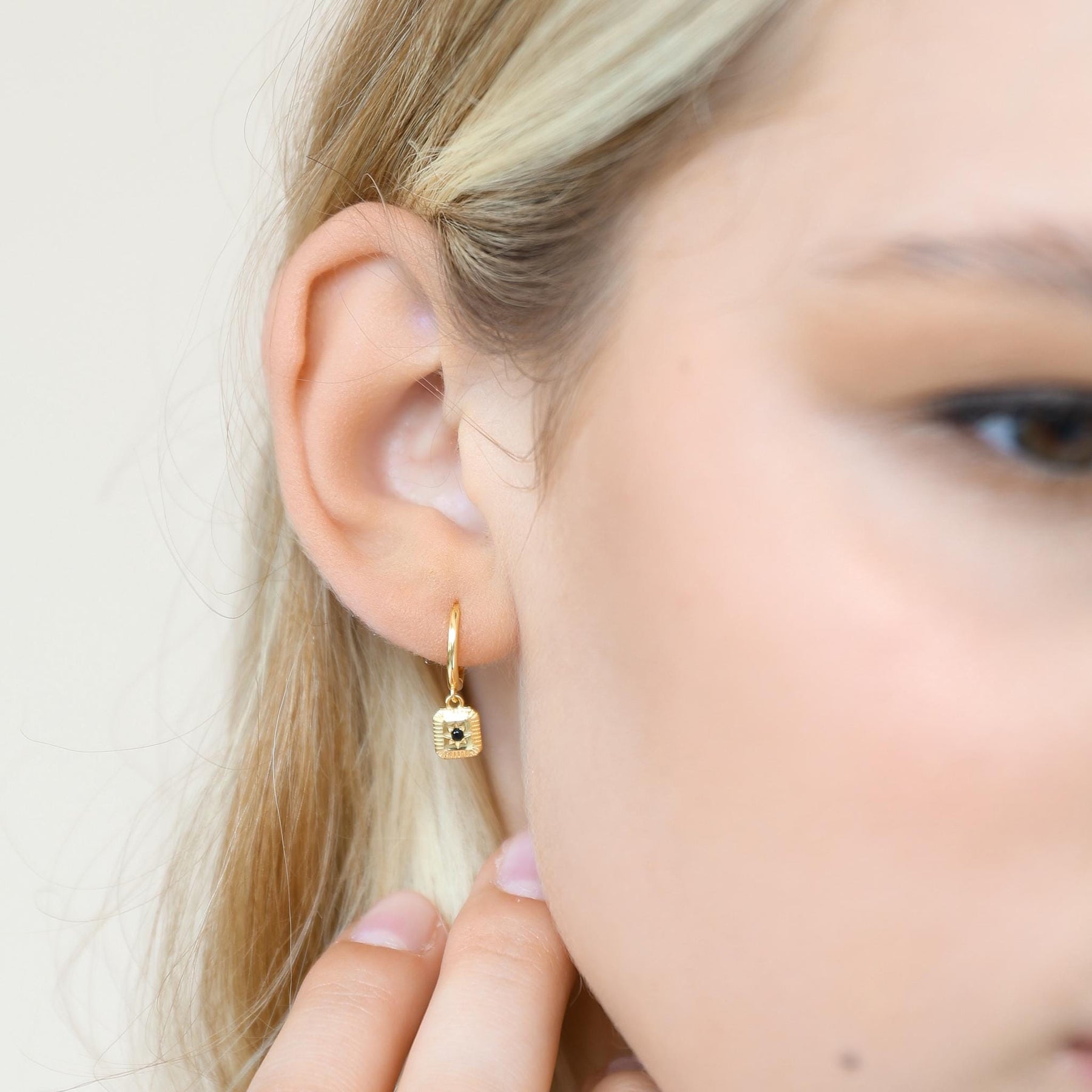 Hoop Earrings with Black Stone Charm by GracePiana - Grace & Gift