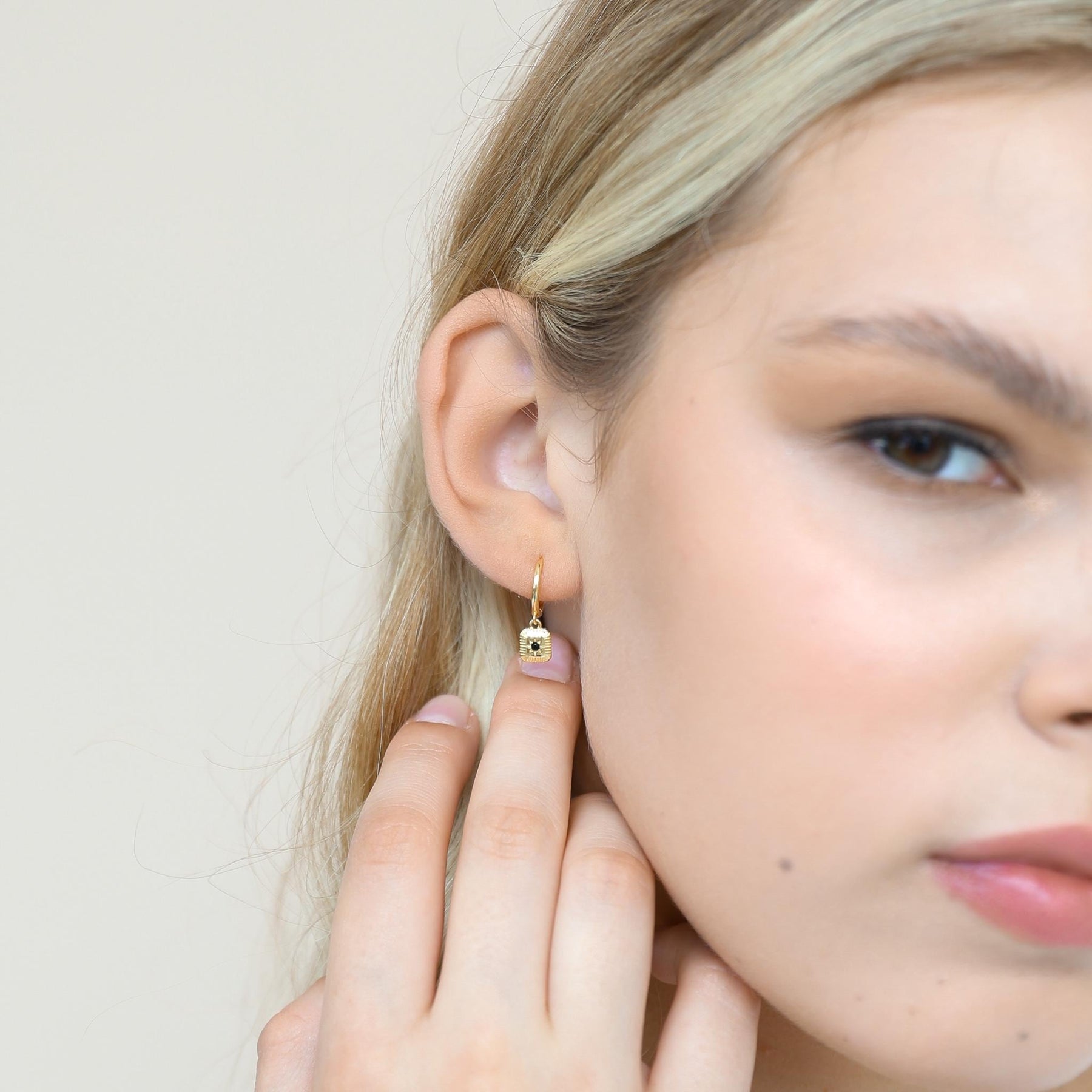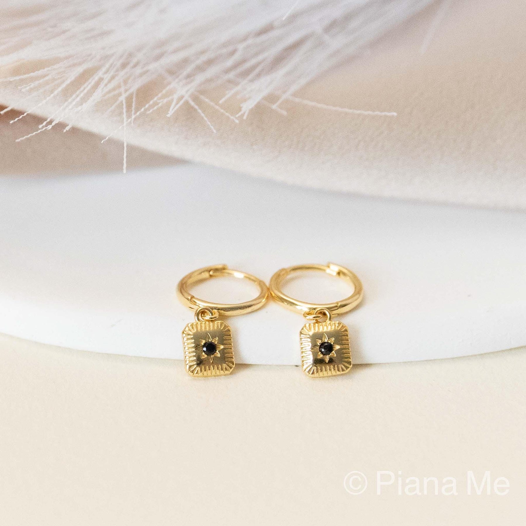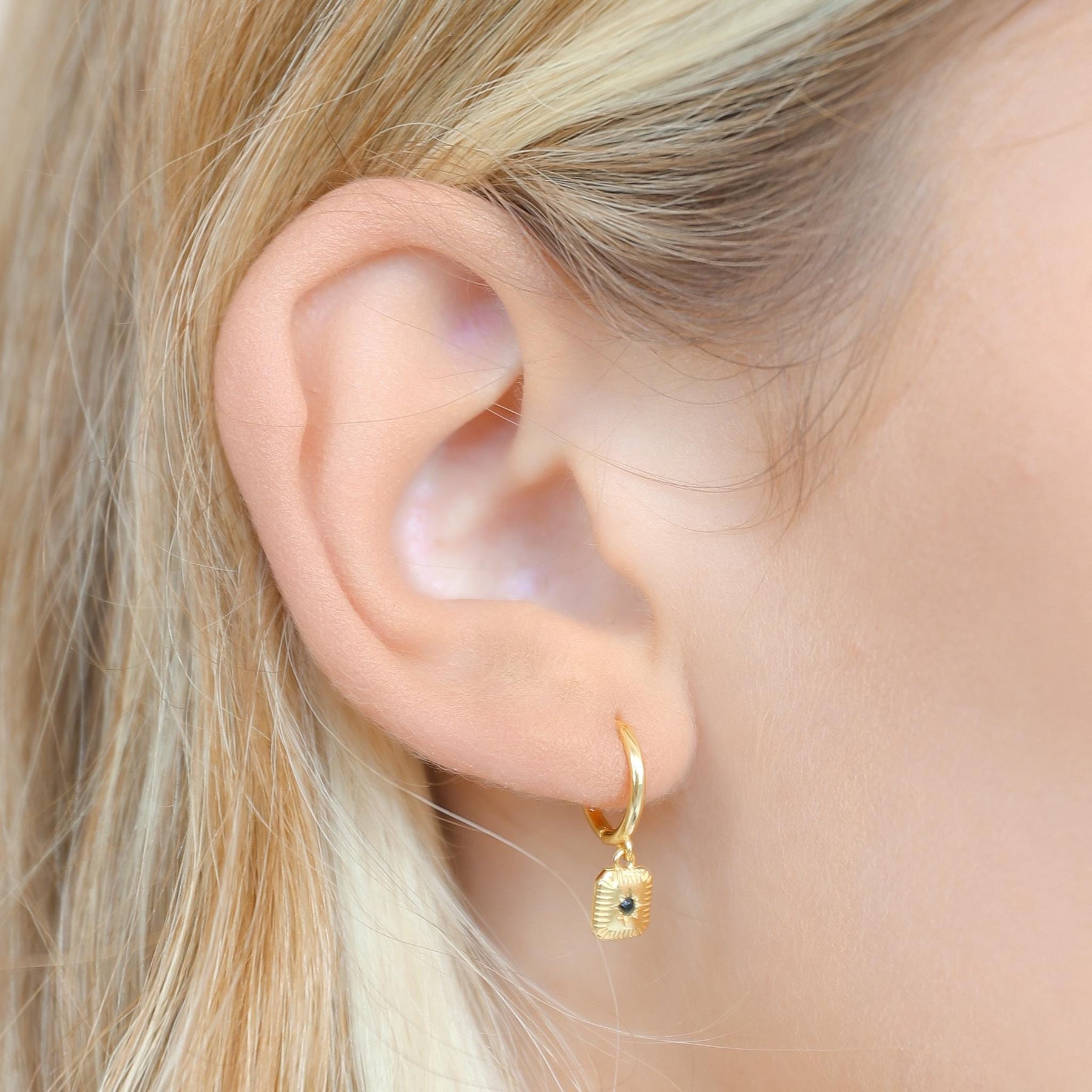 These Hoop Earrings with Black Stone Charm are crafted from high-quality 925 sterling silver and finished with durable gold plating for a rich, elegant shine. Each hoop features a small black gemstone charm that adds a bold, modern touch to the classic hoop silhouette.
