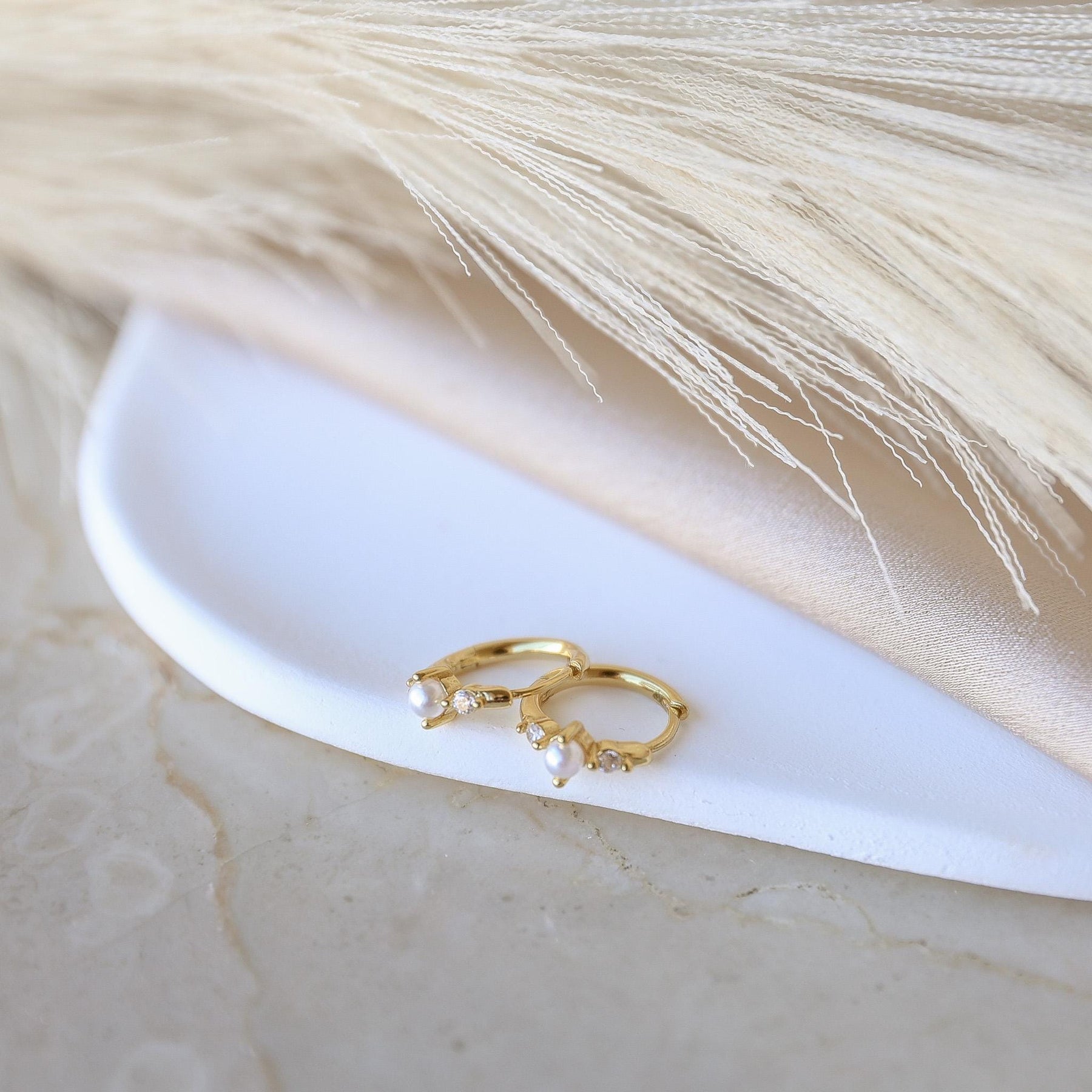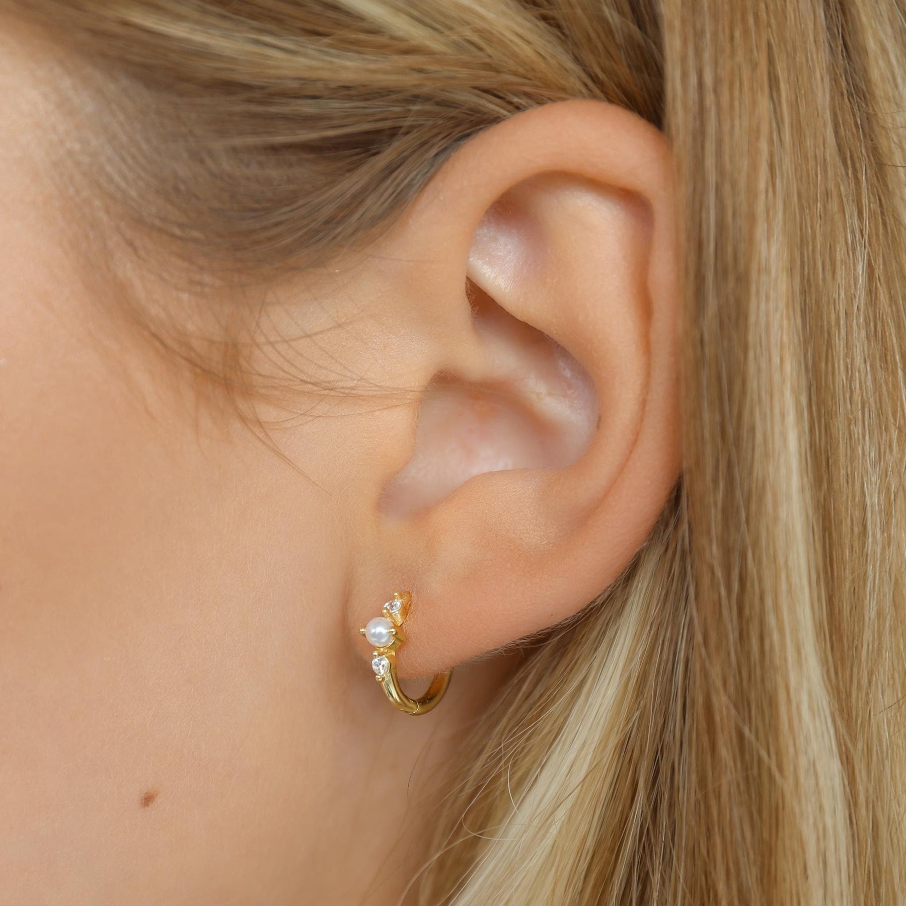 These elegant Hoop Earrings with Pearls are crafted from premium 925 sterling silver and finished with high-quality gold plating. Each hoop features delicate freshwater pearl accents paired with tiny sparkling cubic zirconia stones, creating a refined and feminine look.