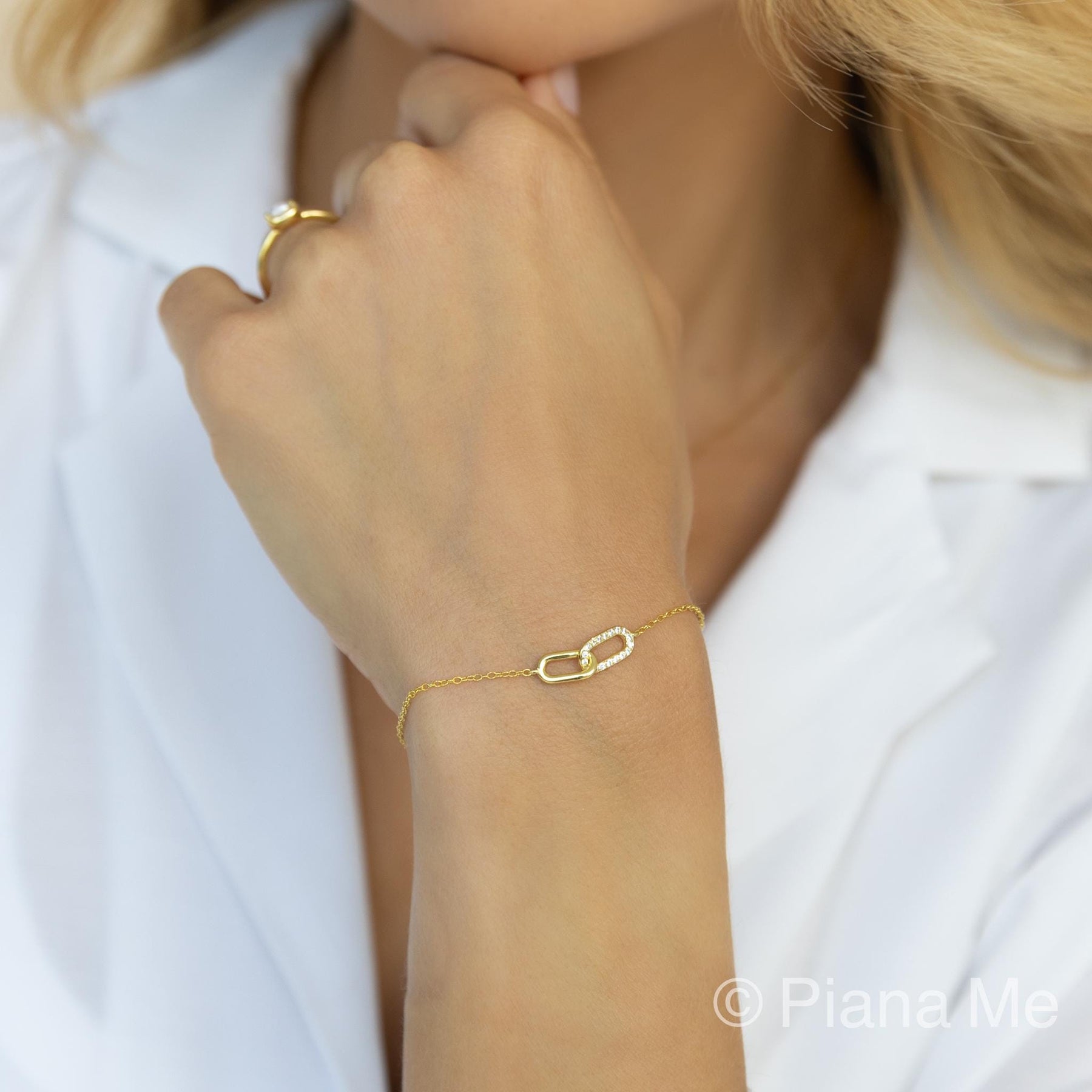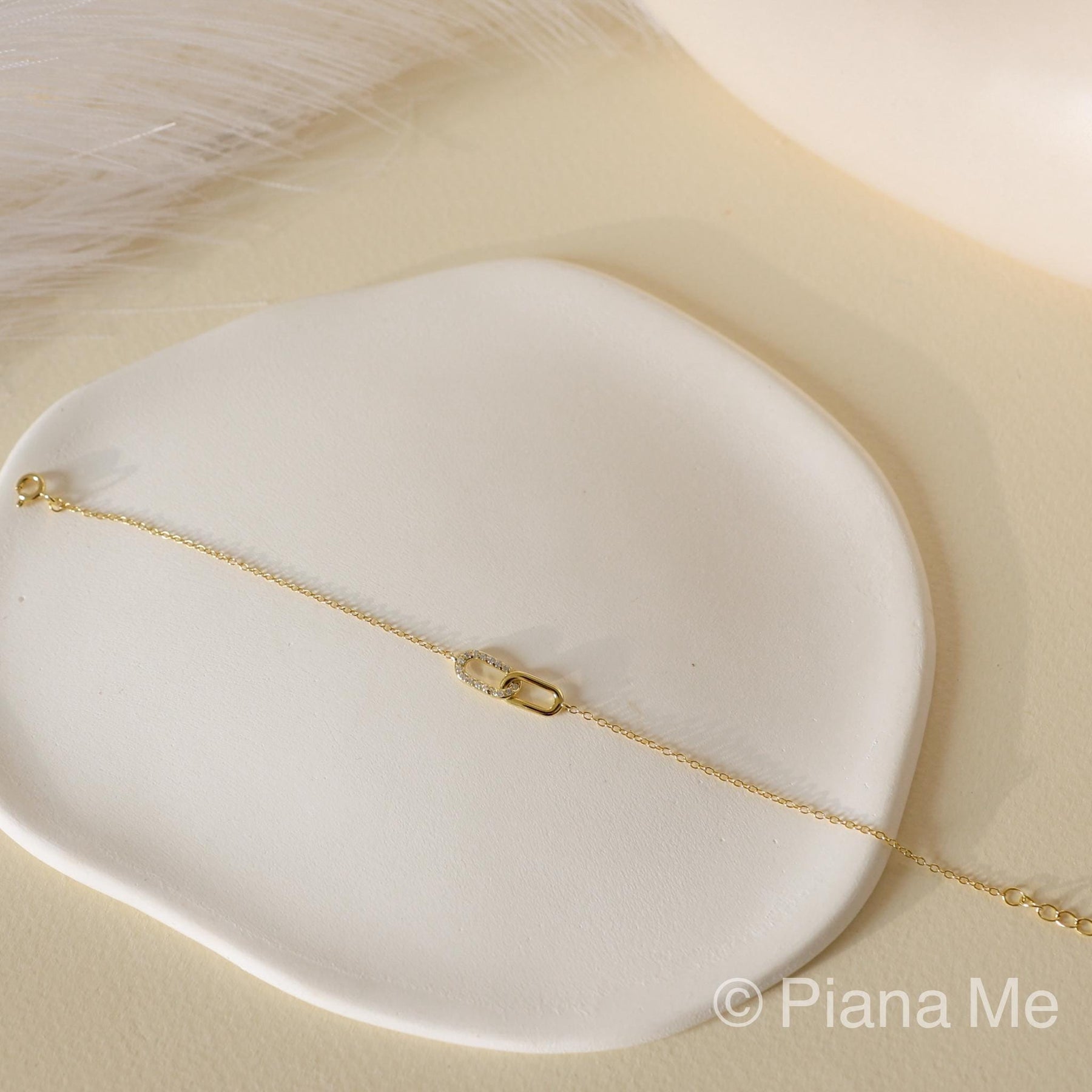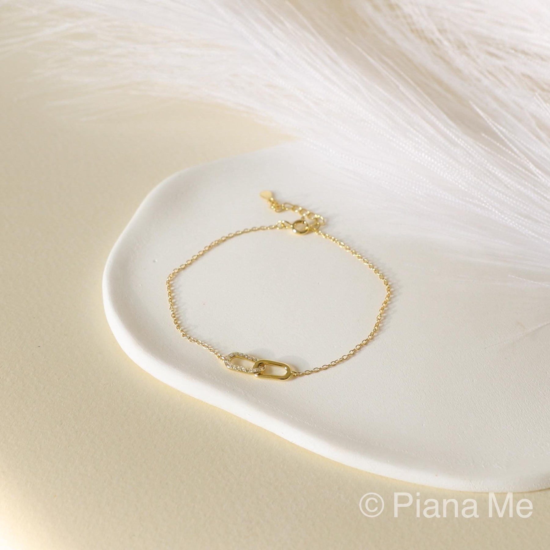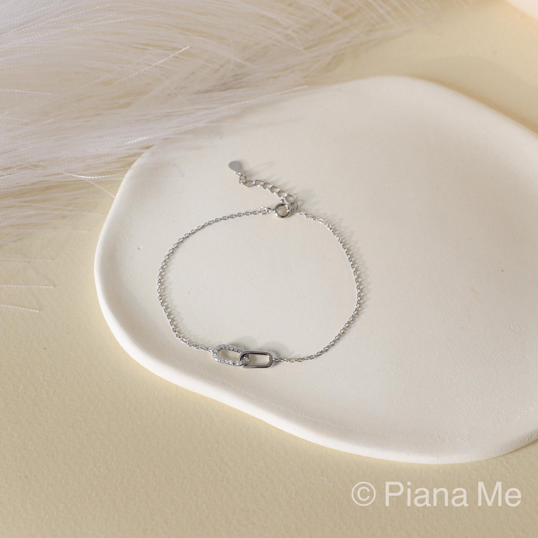 This Interlocking Bracelet features a modern, elegant design with two interlinked charms—one polished gold-plated and the other adorned with sparkling diamond-like cubic zirconia crystals. Crafted from high-quality 925 sterling silver, this bracelet adds a refined and timeless touch to any jewelry collection.