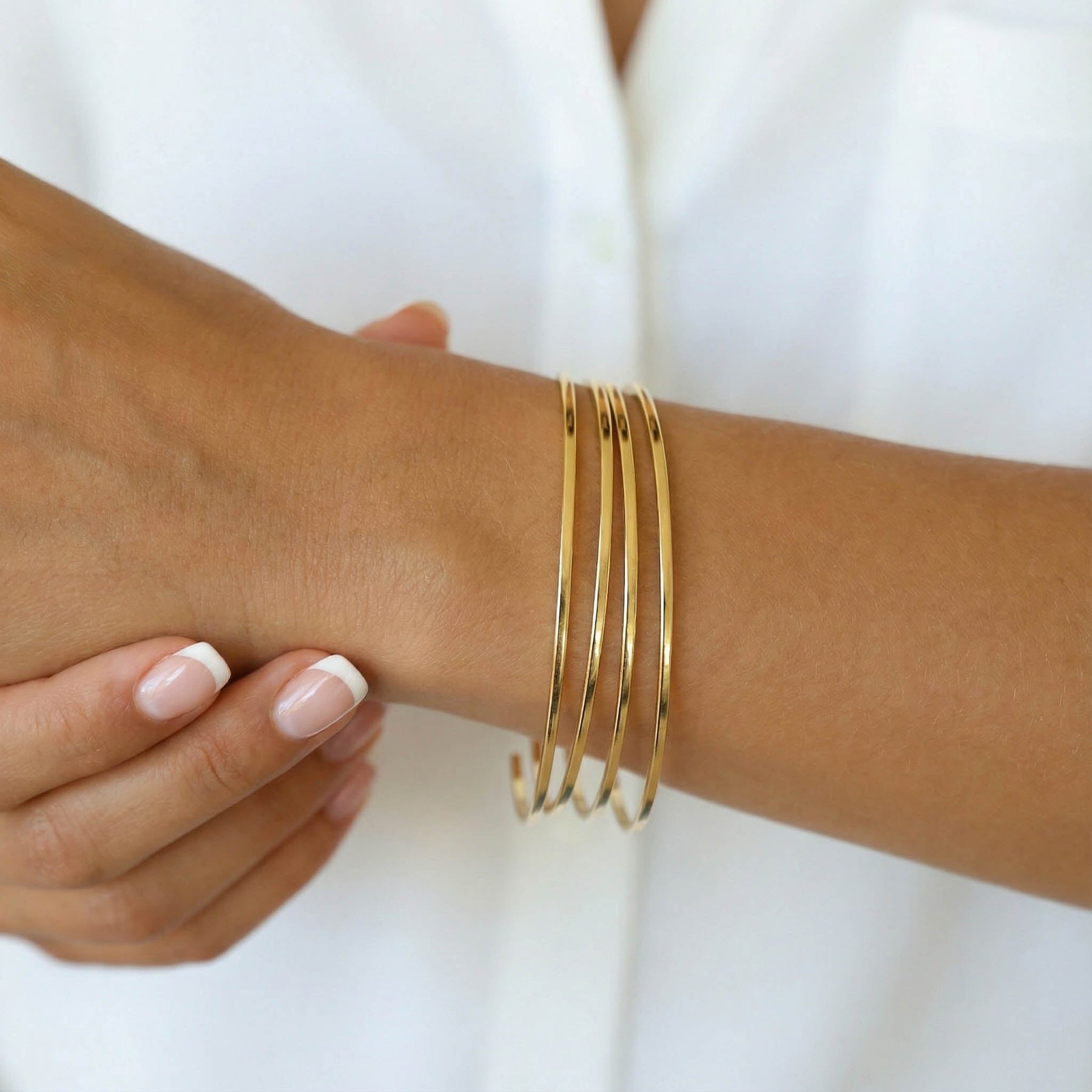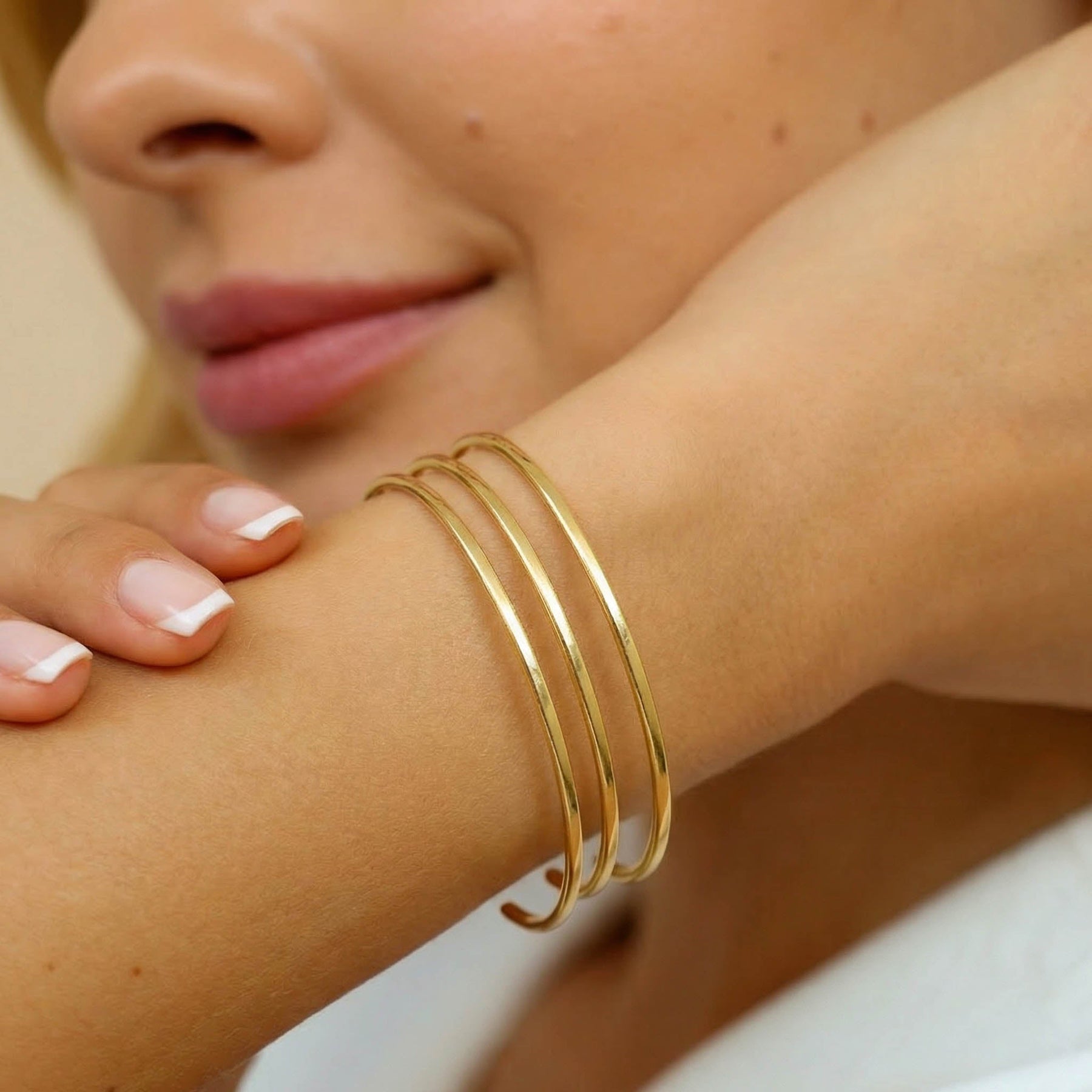 Stunning and sleek enough to accentuate the styles you wear every day, this unique gold cuff is as versatile as your personality, and as capable of achieving a variety of goals as you are. If you’re looking for a piece of jewelry that looks amazing stacked this is your best friend! Buy more and save!