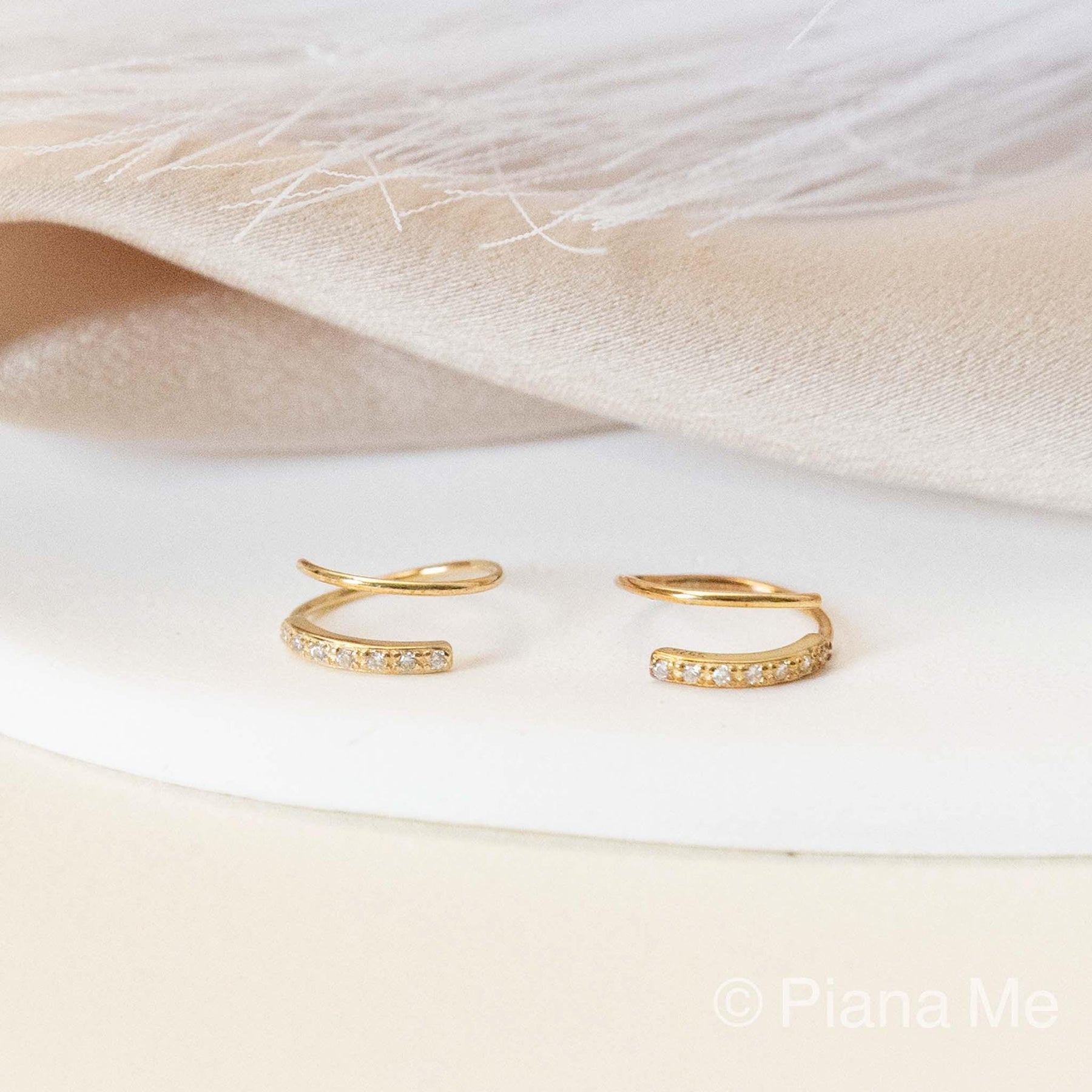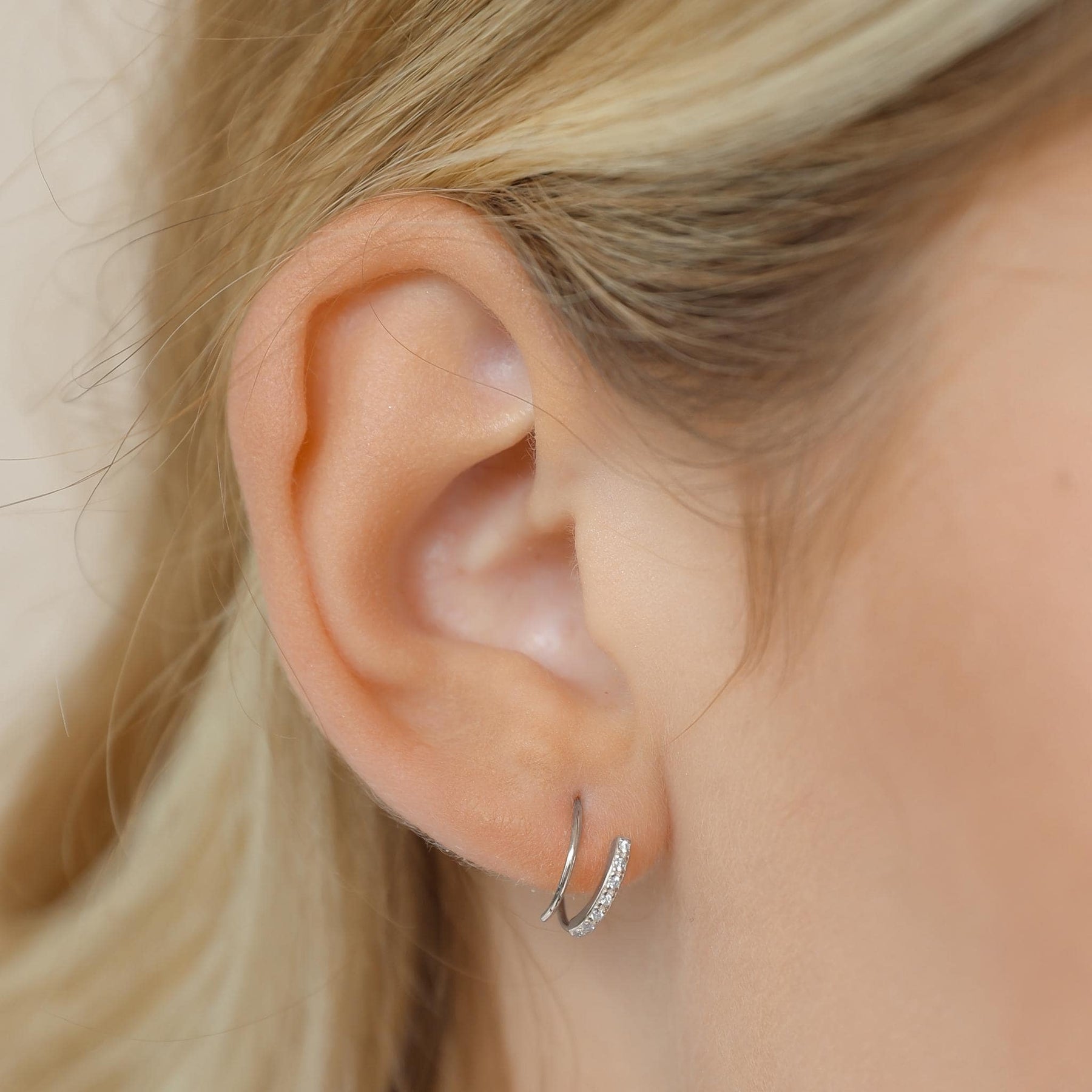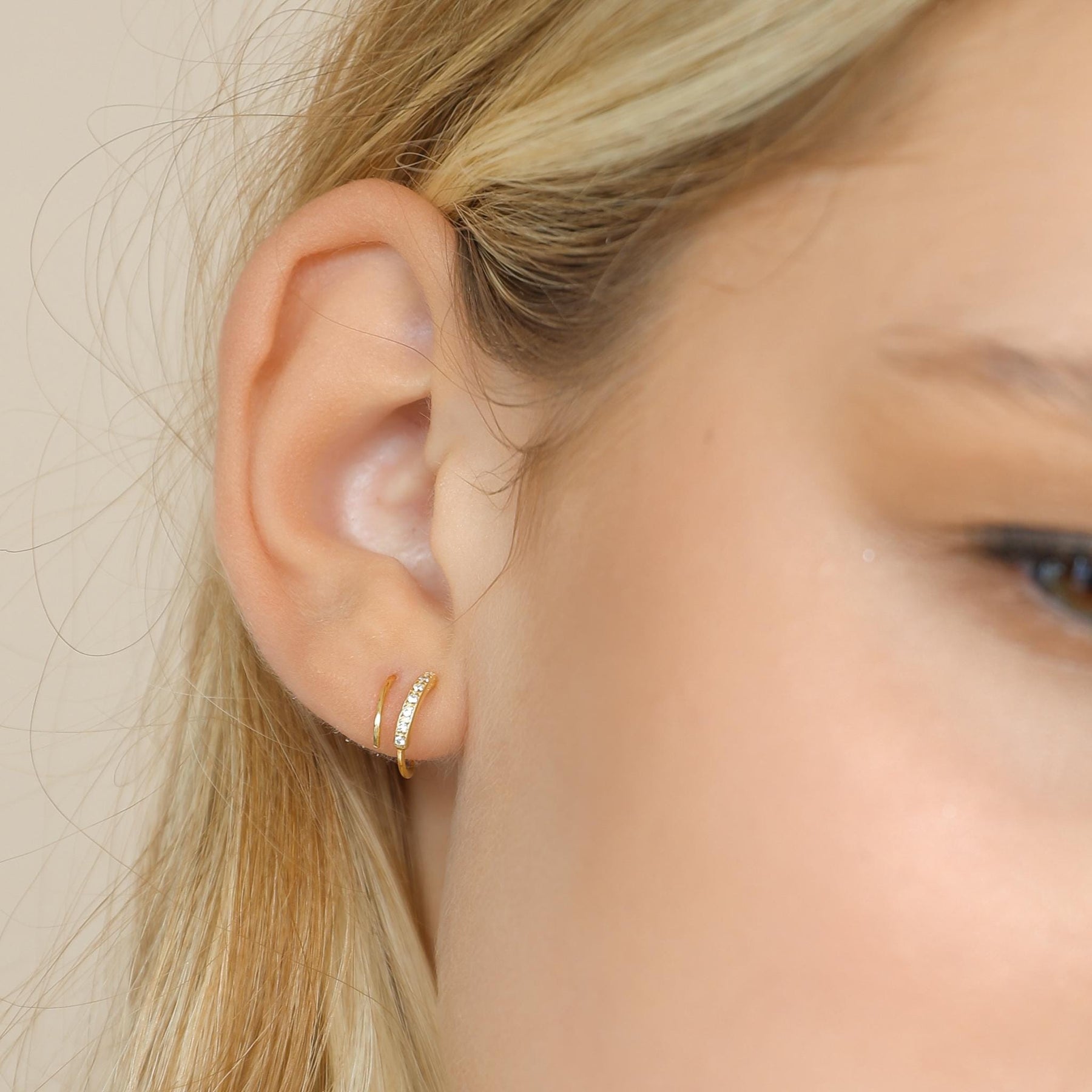 These Open Huggie Diamond Hoops bring a modern twist to a classic design. Crafted from premium 925 sterling silver and finished with a durable gold plating, each earring features an elegant open-ended hoop accented with sparkling cubic zirconia for a refined, high-shine finish.