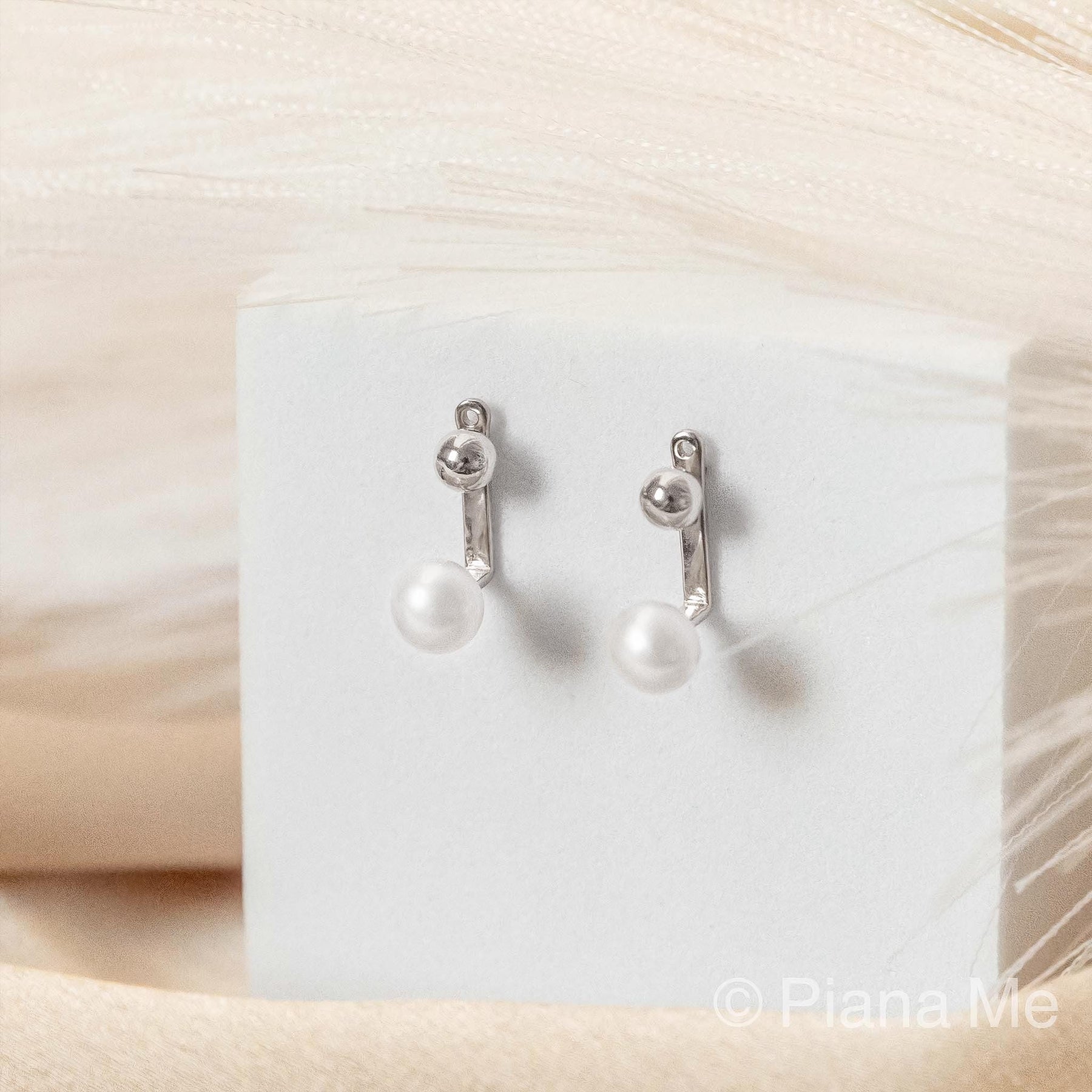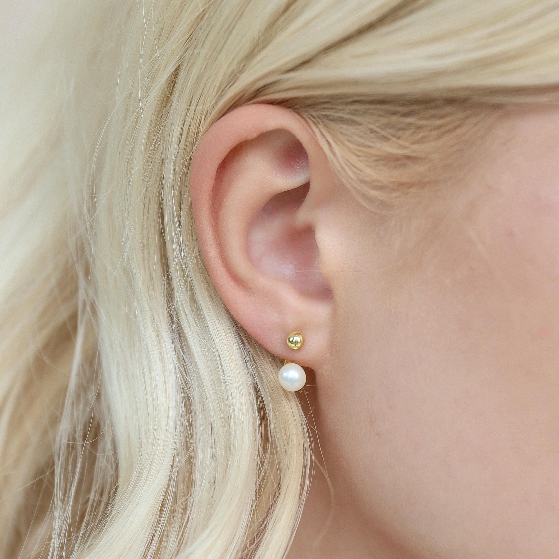 These elegant Pearl Ear Jacket Earrings feature a minimalist gold-plated stud paired with a detachable freshwater pearl drop that sits beautifully behind the earlobe. Crafted from high-quality 925 sterling silver, these earrings offer a modern, versatile look—wear the studs alone for a simple style or add the pearl jacket for an elevated, feminine touch.