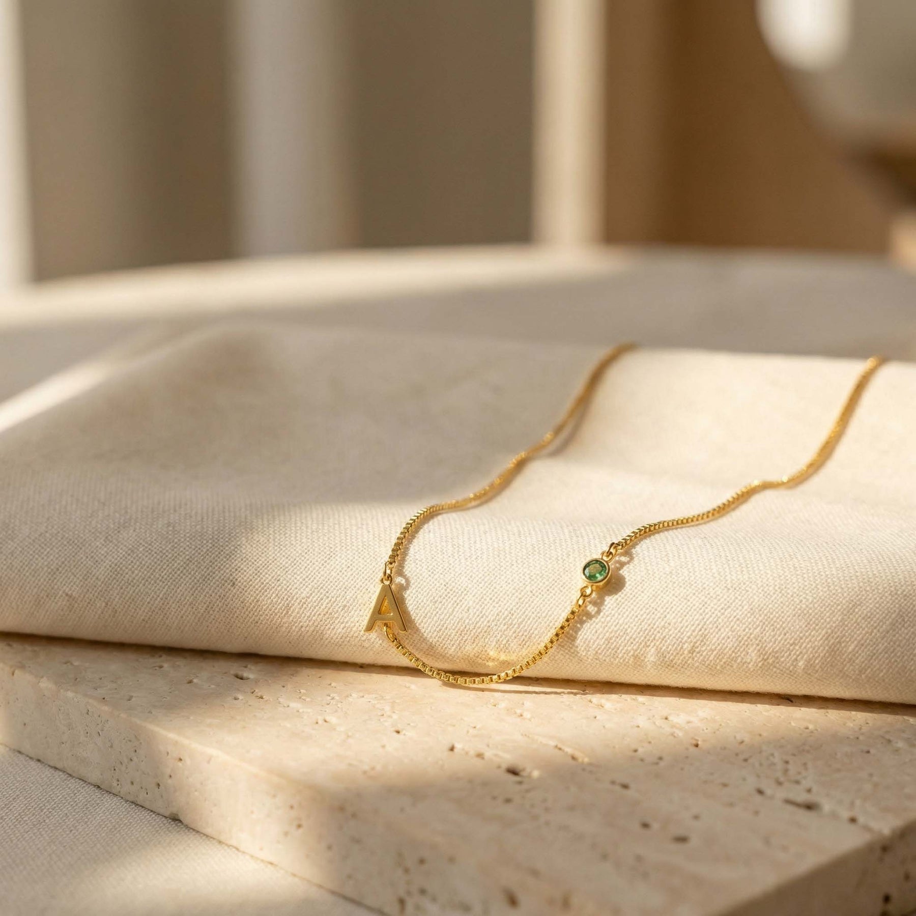 This necklace is a definite winner! The sideways initial pendant with the birthstone is a brilliant design choice. It's perfect for adding a personal touch to any outfit. I'm in love! ✨