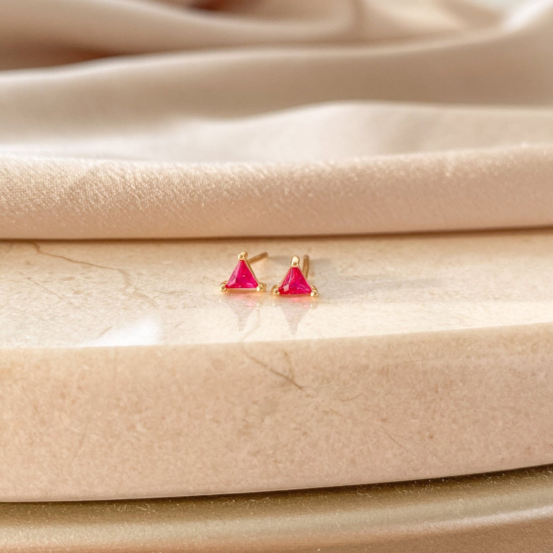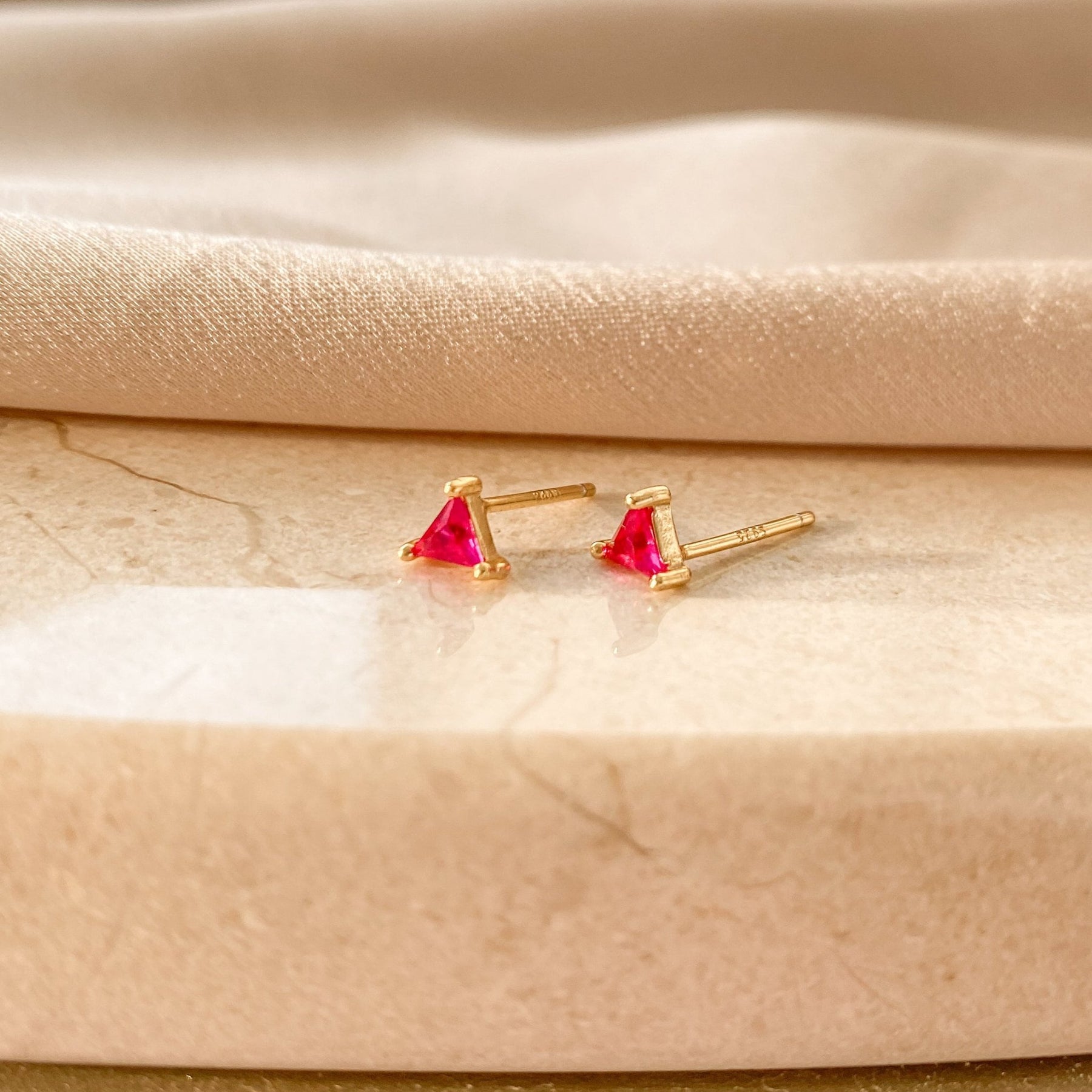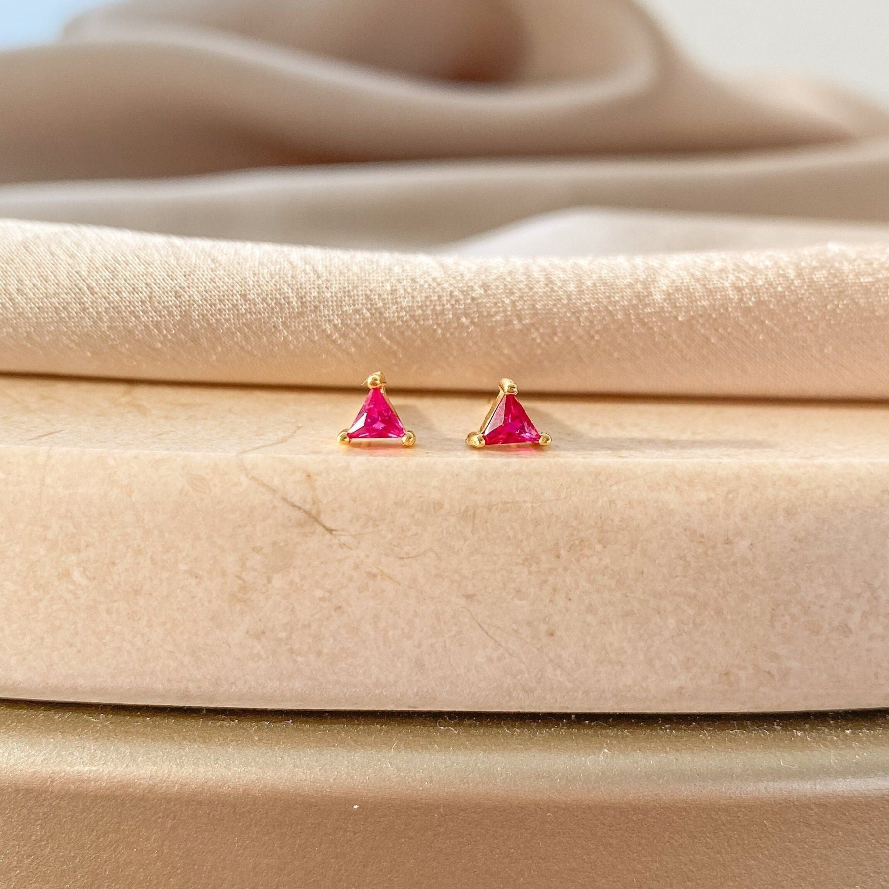 These Small Triangle Stud Earrings offer a chic and modern touch to any look. Crafted from high-quality 925 sterling silver and finished with durable gold plating, each stud features a tiny triangle-shaped gemstone that adds a subtle pop of color and elegance.