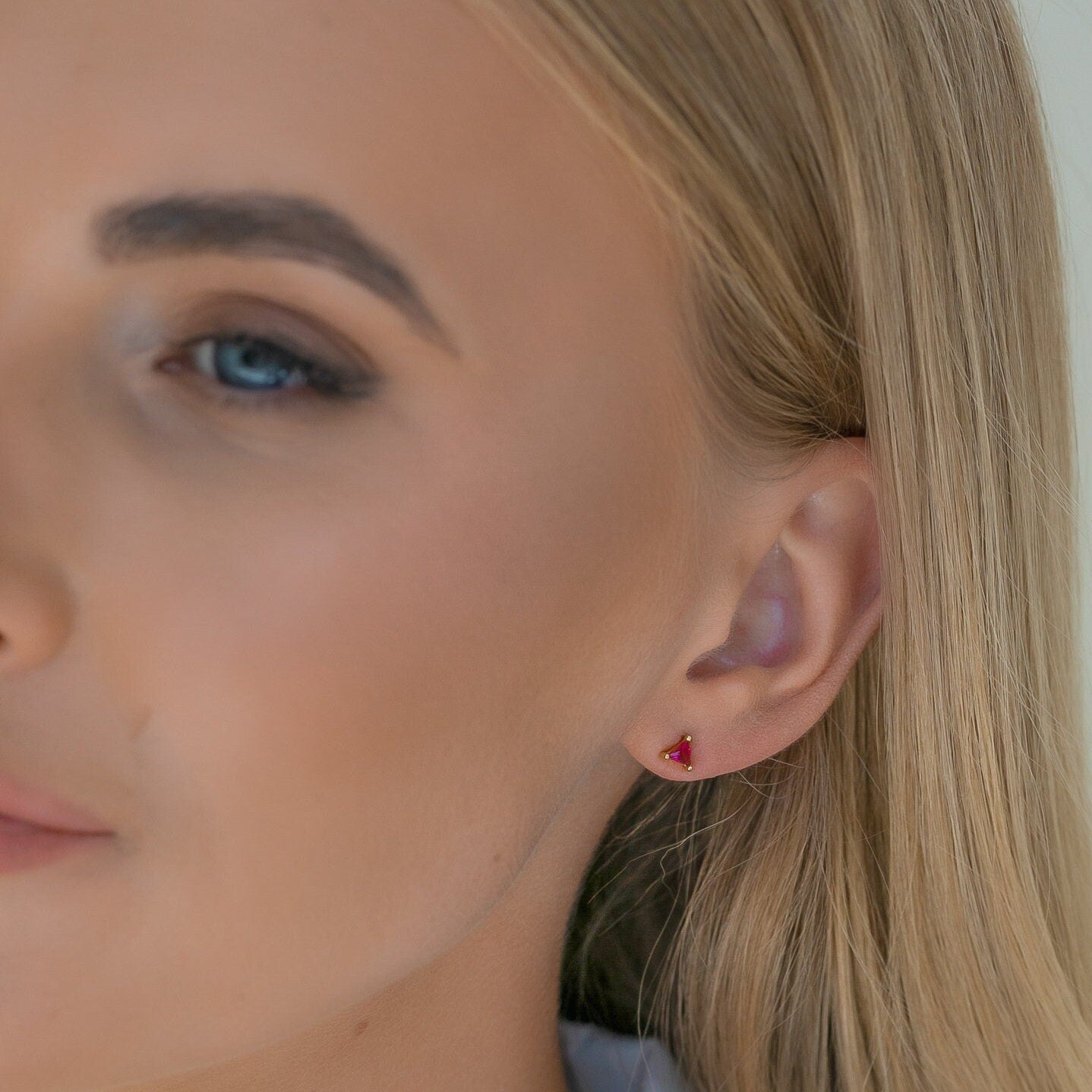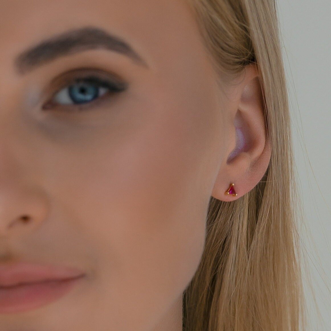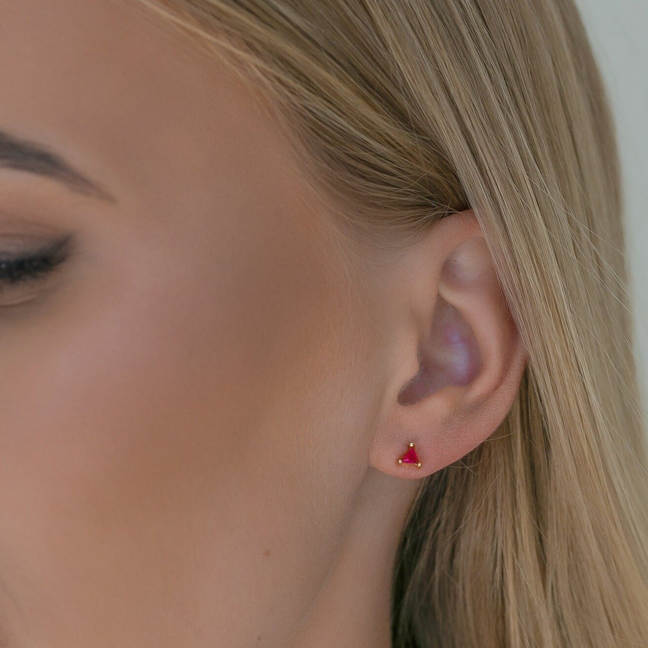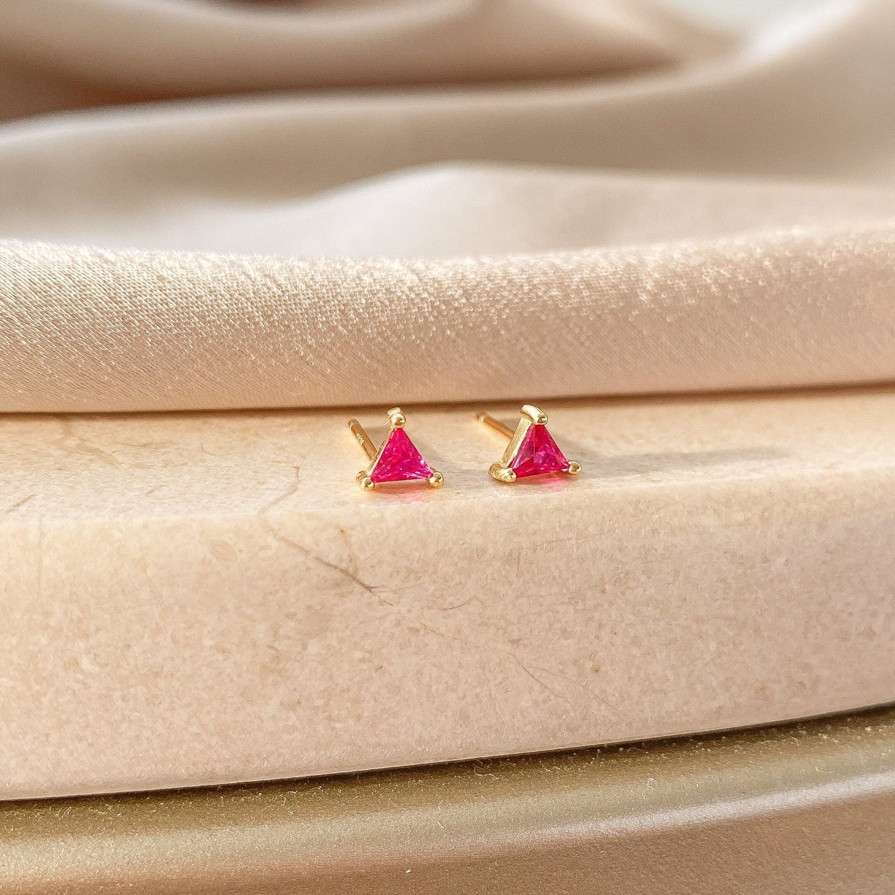 These Small Triangle Stud Earrings offer a chic and modern touch to any look. Crafted from high-quality 925 sterling silver and finished with durable gold plating, each stud features a tiny triangle-shaped gemstone that adds a subtle pop of color and elegance.